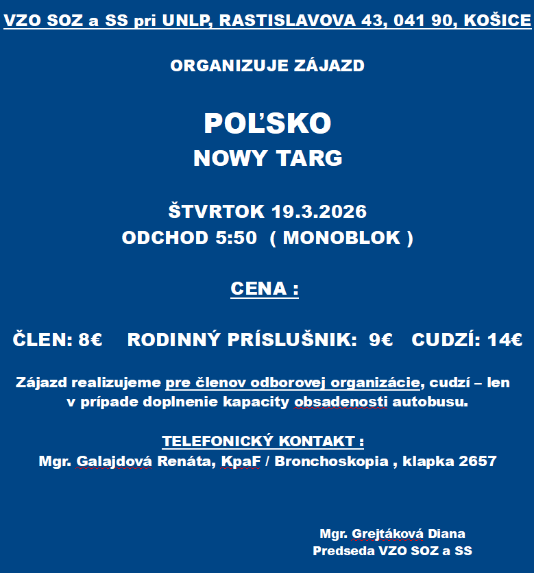 PREHĽAD AKTUALÍT SOZ ZaSS pri UNLP Košice
